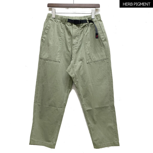 ・グラミチの特徴的な仕様でもある180度開脚可能なガゼットクロッチやウエストのウェブベルトによるイージーな履き心地もポイント。