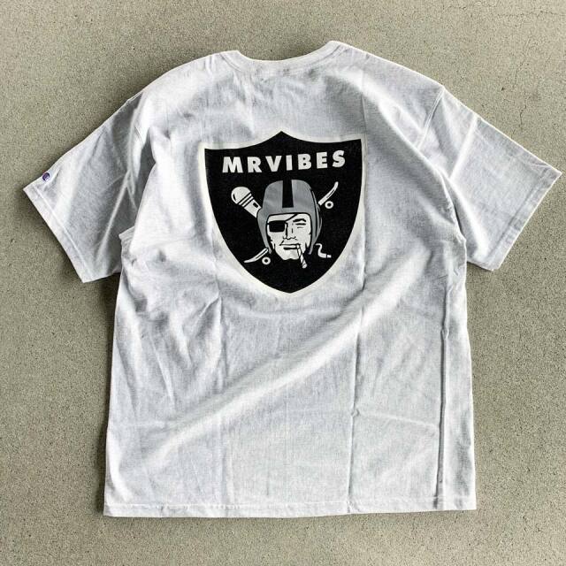そんなロゴの背景に使用されていたサーベルをマイクとスケートボードに変更した当店らしいデザインとなっています。 フロントにはショップネーム、さらにGOD BLESSのフレーズを落とし込んでいます。