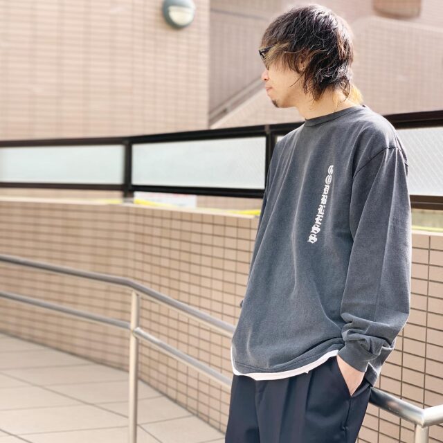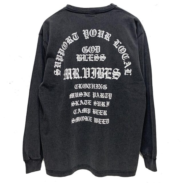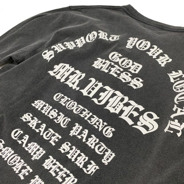 SUPPORT YOUR LOCALのフレーズと共に様々なカルチャーをオールドイングリッシュで落とし込んだL/S Tee。