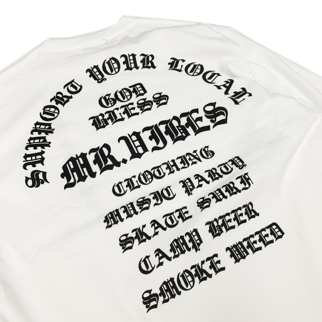 ショップネームや"SUPPORT YOUR LOCAL"のフレーズ、音楽やパーティー、スケート等の様々なカルチャーを男臭いオールドイングリッシュで落とし込んでいます。