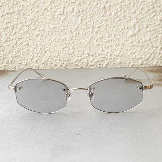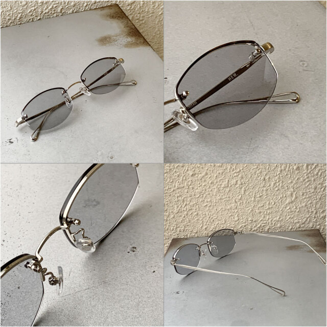 リムウェイと呼ばれる1940年代のレンズ背面にメタルバーを這わせた ツーポイントフレームの仕様をバレル型と呼ばれるレンズシェイプで 現代的なサイズバランスに仕上げたモデル。