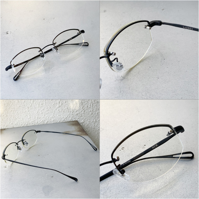 リムウェイと呼ばれる1940年代のレンズ背面にメタルバーを這わせた ツーポイントフレームの仕様をバレル型と呼ばれるレンズシェイプで 現代的なサイズバランスに仕上げたモデル。