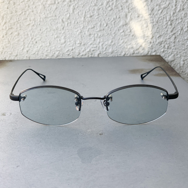 リムウェイと呼ばれる1940年代のレンズ背面にメタルバーを這わせた ツーポイントフレームの仕様をバレル型と呼ばれるレンズシェイプで 現代的なサイズバランスに仕上げたモデル。