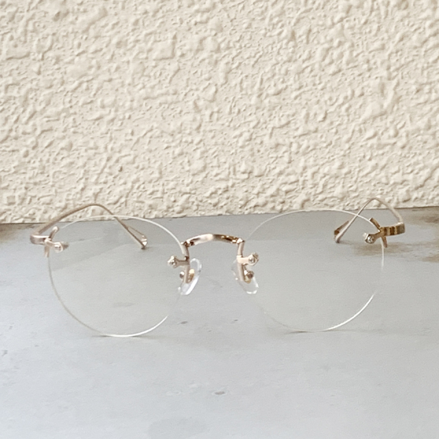 クラックの発生を少なくしたポリアミド樹脂のレンズを採用し、クラシックなレンズシェイプのリムレスフレームにオリジナルライトカラーレンズを合わせてモードな印象にもなるスタイルに仕上げた。
