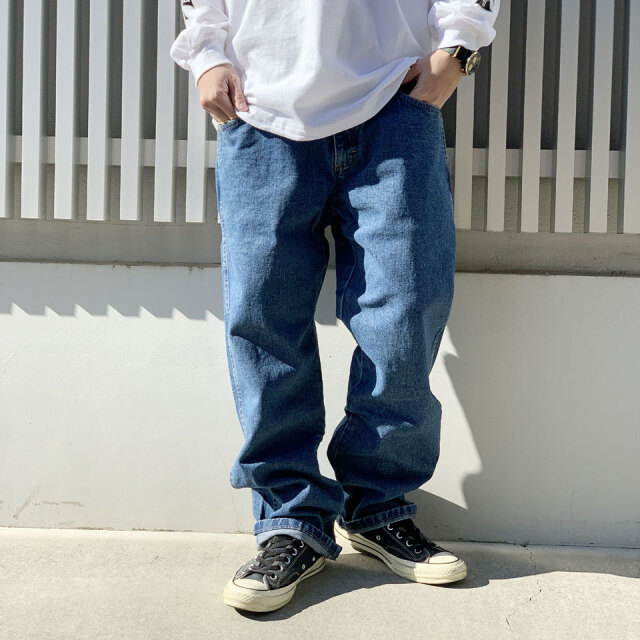 クラシカルな仕様の5ポケットデニムでゆとりのあるリラックスフィット。