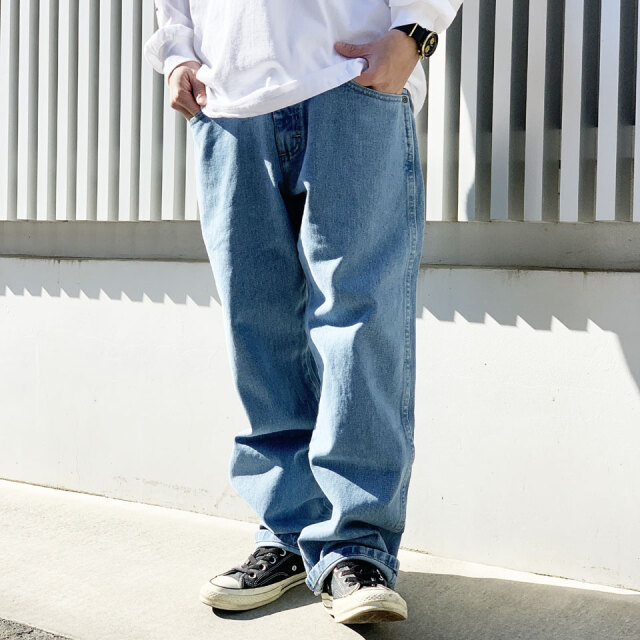 クラシカルな仕様の5ポケットデニムでゆとりのあるリラックスフィット。